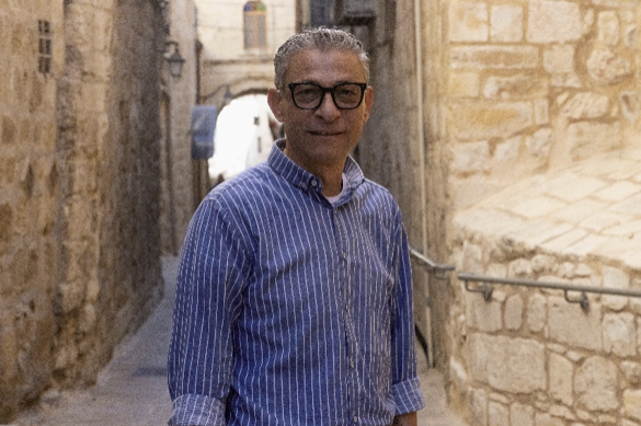 Si on devait décrire Usama Salman, il serait un savant mélange d’assistant social et de consultant en stratégie, entièrement dévoué à la communauté chrétienne de Jérusalem. Corps longiligne, cheveux blancs gominés et épaisses lunettes noires, ce chrétien né et élevé dans la ville sainte, dédie sa vie et son travail à un objectif : empêcher la disparition des chrétiens de Jérusalem. Depuis son bureau de la vieille ville, il dresse un constat pessimiste : “En 1922, il y avait 14 669 chrétiens à Jérusalem sur 62 000 habitants. D’après l’enquête que j’ai menée en 2023, nous sommes aujourd’hui moins de 10 000 sur un million d’habitants. À ce rythme, et d’ici 50 ans, les chrétiens auront disparu de la ville.” Son regard se voile. “Fermez les yeux un moment. Imaginez. À quoi ressemblerait Jérusalem sans chrétien locaux ?”
