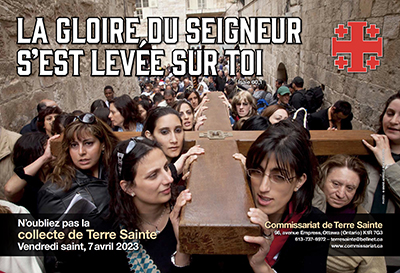 Après plusieurs années de perturbations à cause de la pandémie, la société canadienne a enfin retrouvé un certain sentiment d’ordre et de sécurité; et, dans notre Église, la Collecte pontificale de la Terre Sainte a été restaurée au Vendredi Saint, qui tombe cette année le 7 avril.