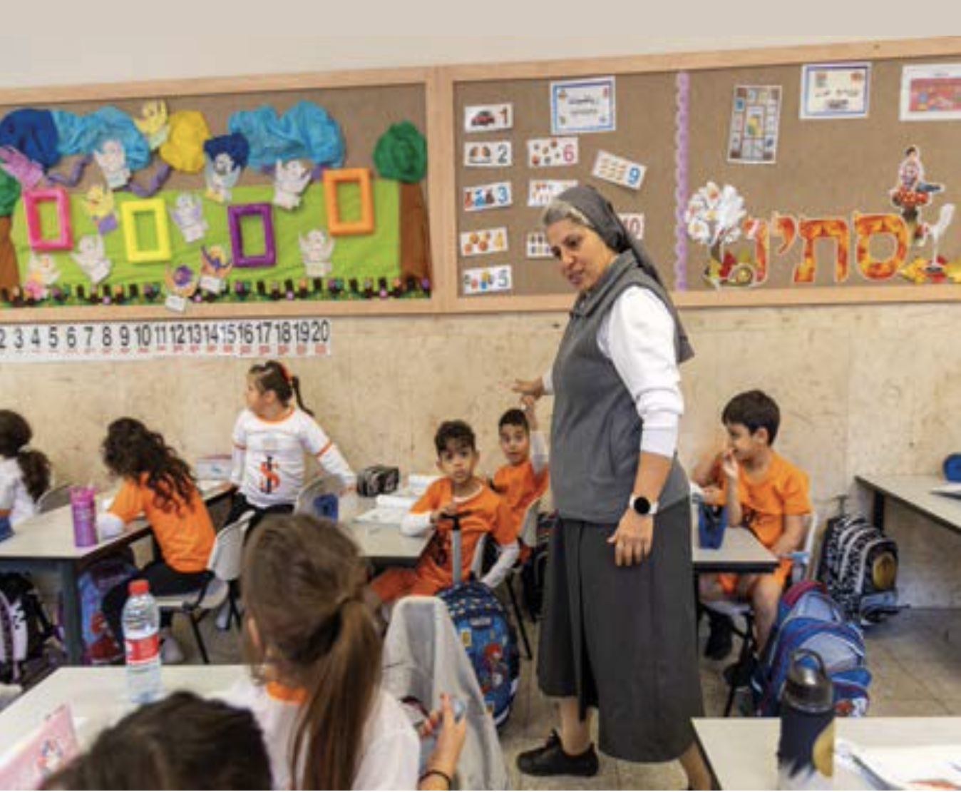 It was a long path that reconciled her with her identity and made her critical of the system: "There is no place for Christianity and its history in government school curricula. In Arab schools, you are told about the history of the Qur'an, and in Hebrew schools, you are told about the history of the Torah. Christianity is only evoked through the prism of the Crusades." As a result, "Our Christian children don't know who they are," laments Sister Muna, since this phenomenon really causes confusion. Originally from Ramallah, in the occupied West Bank, the 43-year-old Sister is Palestinian through and through. "Why confusing? Because they are mixed. They are Arabs, but they are not Palestinians. They are Israelis but they are not Jews. They are Christians, but they live in a Jewish town. In the educational process, the most important thing for the stability of the child is that he knows who he is. The challenge is to be a Christian while preserving one's Arab identity. This is why, at Saint Joseph’s, we have decided to strengthen their Christian identity. That's our goal." We have trickle-down technique: reaching families through children. "I gave a lesson on Arab saints, and the students took the handouts home. The parents have rediscovered these stories and this part of their identity," says the spirited sister.