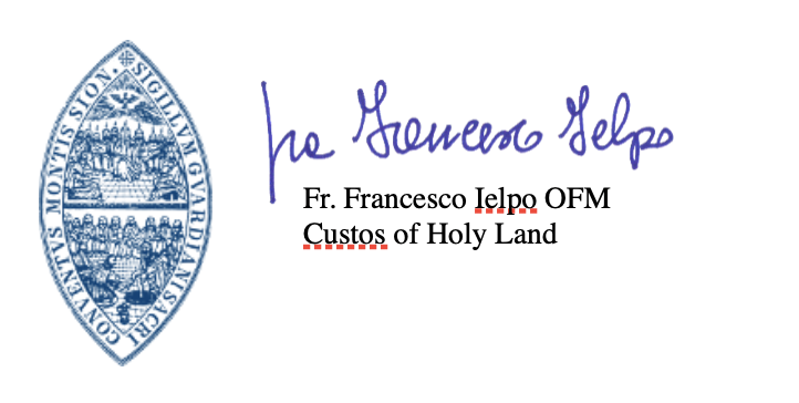 With gratitude for your attention and generosity, we assure you of our remembrance in prayer from the Holy Places and wish everyone a joyful Easter experience as a source of new life.